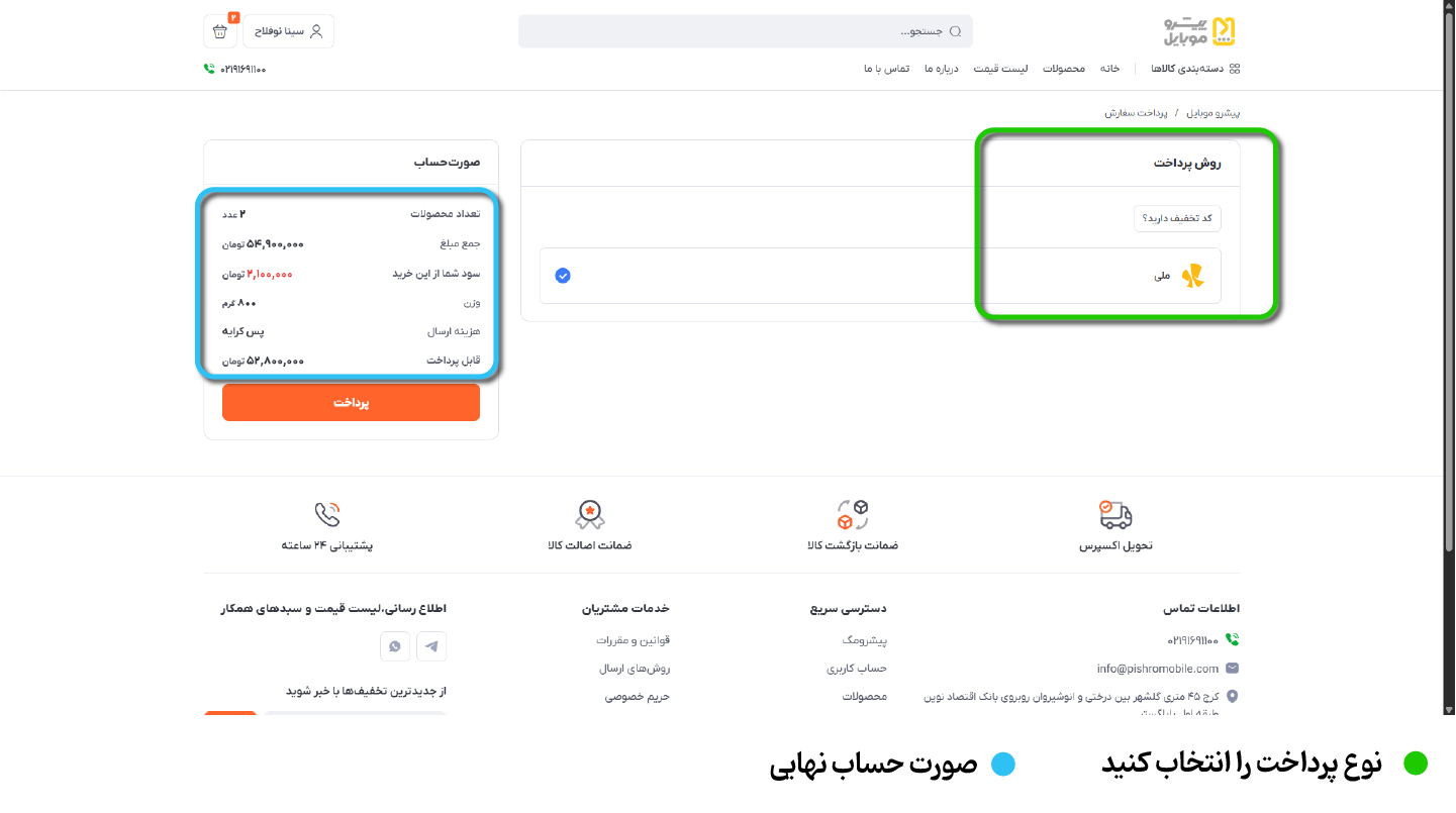 5. پرداخت مبلغ کالا و هزینه ارسال