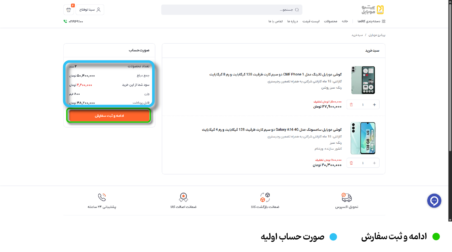 3. بررسی اغلام سبد و ادامه فرایند خرید