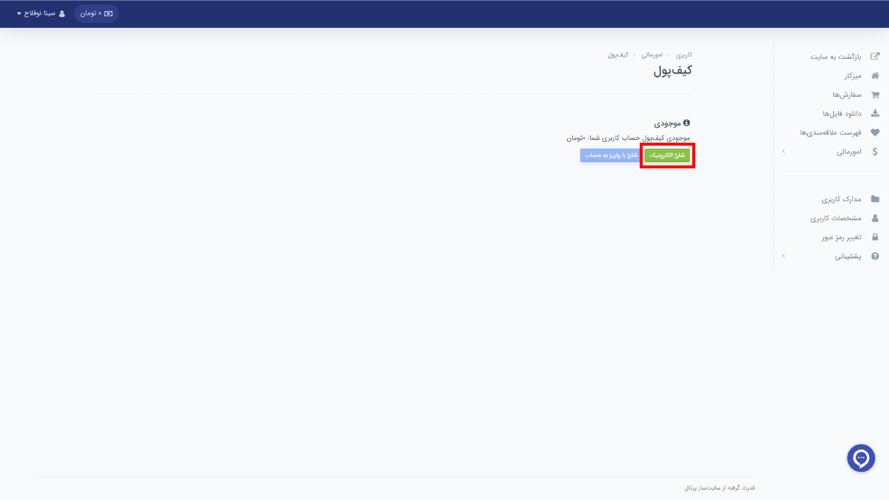 در پنل کاربری خود بر روی گزینه کیف پول برنید.